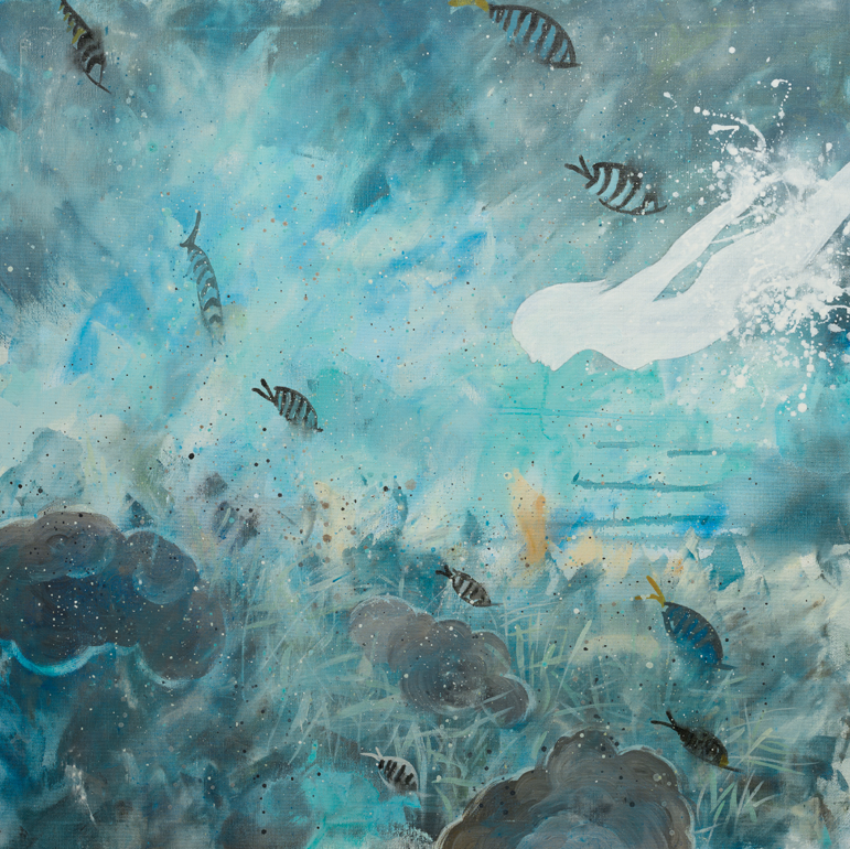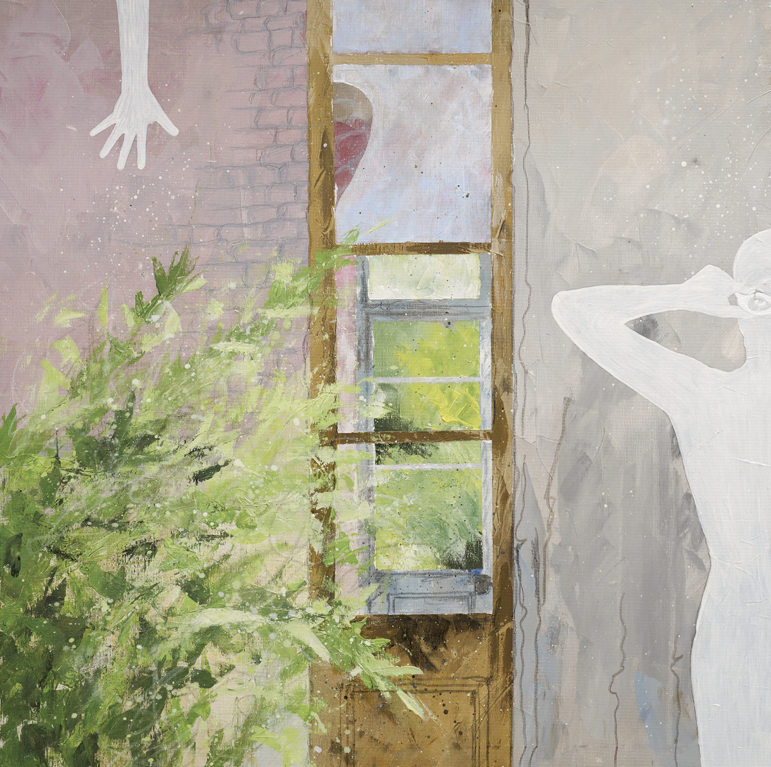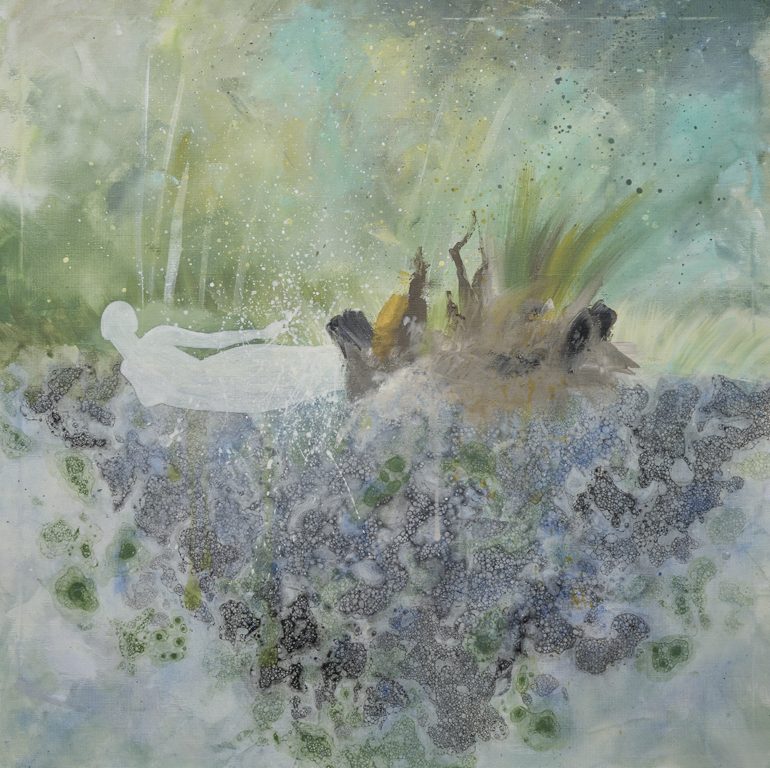 Ich arbeite prozessorientiert. Das Bild entsteht aus dem Eintauchen in Atmosphäre und Geschichte eines Ortes: Gedanken, Gefühle, Farben und Stimmung dürfen fließen. Schicht um Schicht trage ich auf, suche Durchblicke, lasse Überlagerungen zu. Menschen tauchen auf und verschwinden wieder – ihre Spuren bleiben. Natur wächst darüber, wäscht aus, verändert. Genau diese Bewegung interessiert mich: Wie das, was war, nicht einfach verschwindet, sondern in etwas anderes übergeht.